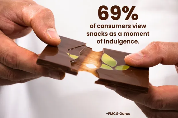 While everyone wants healthier snacks, customers are beginning to acknowledge the importance that their mental and emotional well-being play in their overall health. In a proprietary study done for Barry Callebaut, nearly half of the consumers polled said they like “moments of indulgence where they pay no attention to nutritional intake.” More and more, customers are setting aside the stress of thinking about what they “should” eat, and opting for moments of pure pleasure when choosing snacks and treats. Ideally, we can offer our customers the best of both worlds: truly delicious, indulgent items that are better for their health and the planet. In fact, FMCG Gurus found that consumers are pretty evenly divided on what role their snacks should play, with 67% saying they view snacks as a nutritional boost and 69% describing snacks as a moment of indulgence.
